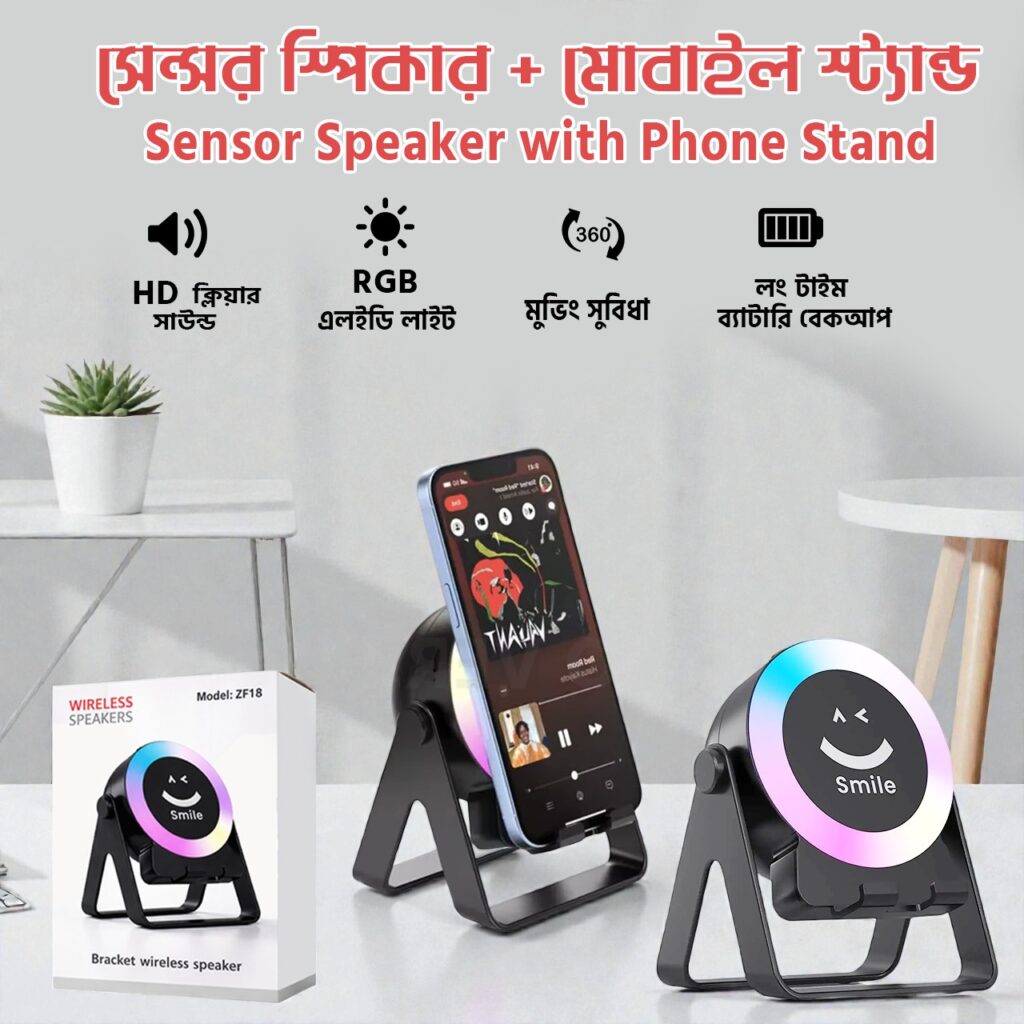ব্লুটুথ ওয়্যারলেস স্পিকার + মোবাইল স্ট্যান্ড + পাওয়ার ব্যাংক
