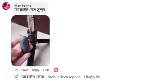 - ✔️ ট্রাইপড সুবিধা থাকায় যে কোন জায়গায় সেট করে ছবি তোলা যায়।