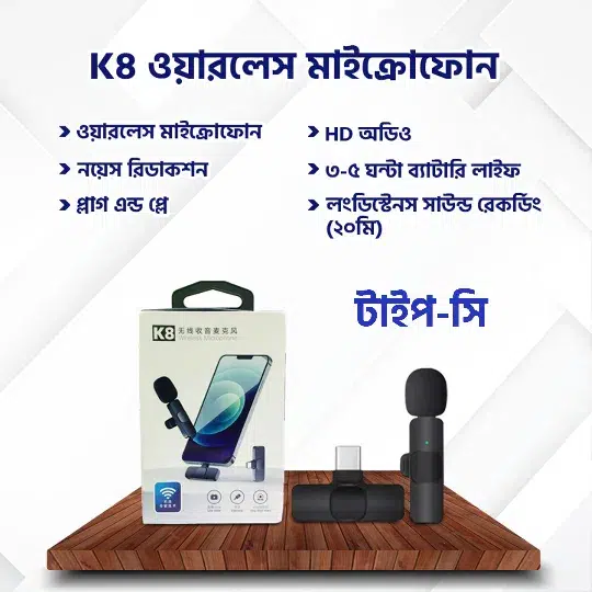 - ✅ ব্লুটুথ ওয়্যারলেস মাইক্রোফোন